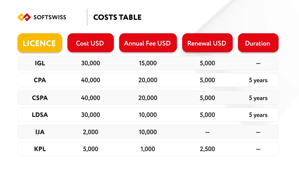 - Relatively low application costs compared to licences such as Malta Gaming Authority (MGA) and other European licences, although not as low as a Curacao Licence, provide a cost-effective option for operators. However, the complex bureaucracy is a drawback, recommending assistance from experienced companies.