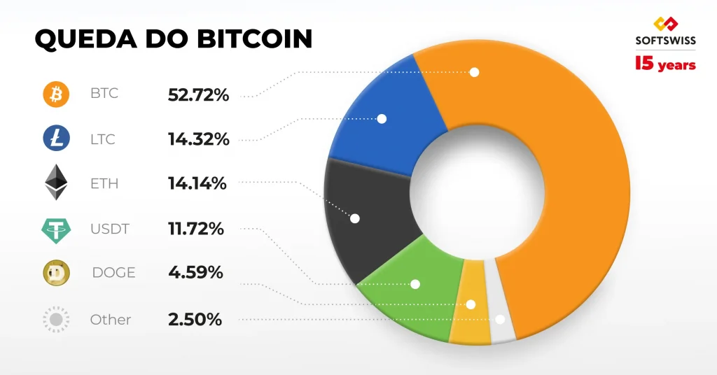 Bitcoin, Litecoin, Ethereum, Tether e Dogecoin formam as cinco principais criptomoedas mais populares no iGaming. Essa lista permaneceu estável ao longo dos anos, com algumas mudanças em suas classificações.