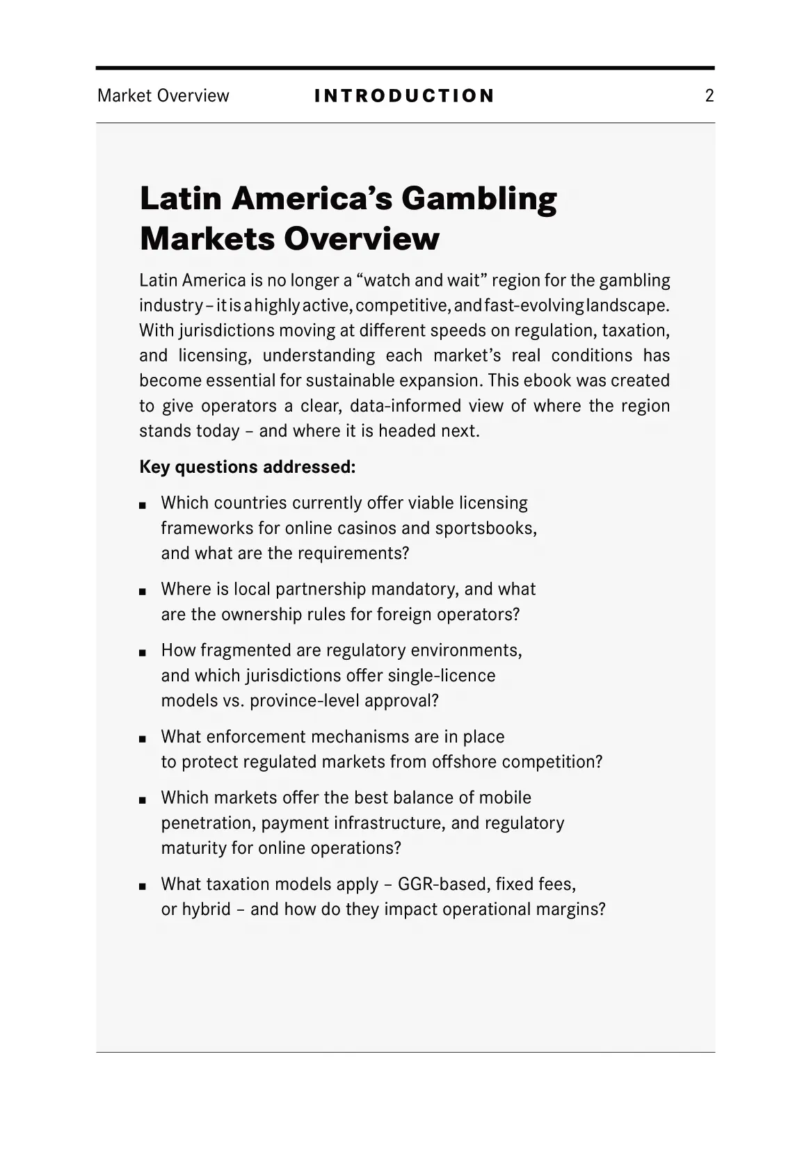 Created for industry decision-makers, the report serves as a practical reference to support informed expansion planning in one of the most dynamic regions in global iGaming.