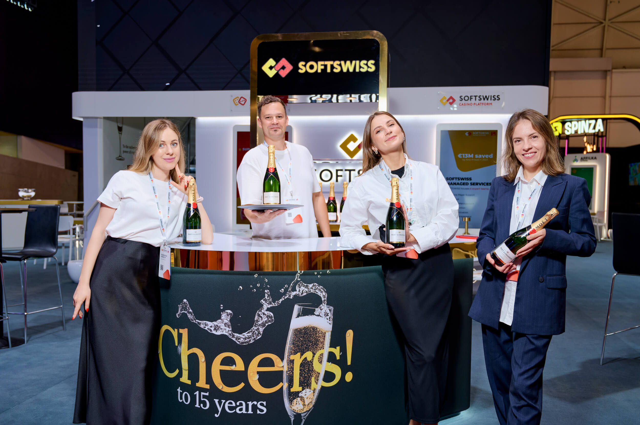 SOFTSWISS привезла на SBC Summit Lisbon команду из восьмидесяти человек и принимала партнеров на крупнейшем в истории компании стенде площадью 288 м². Партнеры, клиенты и коллеги по отрасли собрались на стенде, чтобы отпраздновать 15-летие SOFTSWISS. С поздравлениями, оживленными искуссиями и духом сотрудничества гости изучали бизнес-возможности, заключали новые контракты и открывали новые точки роста.